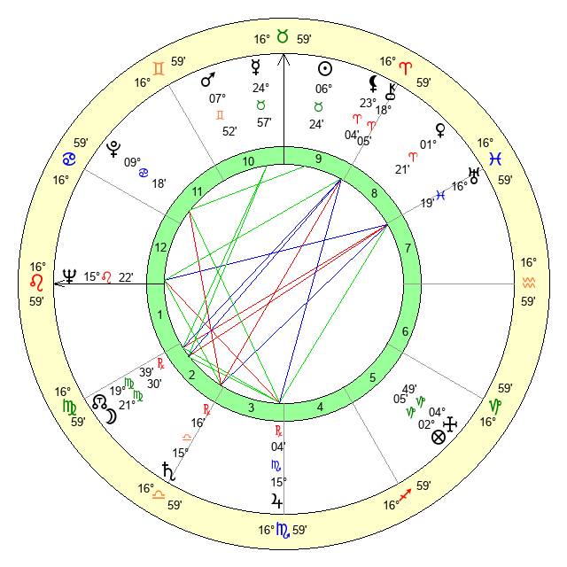 | Neptune | 15 Leo 22 | 0 Aries 59 | 17 Leo 45 |