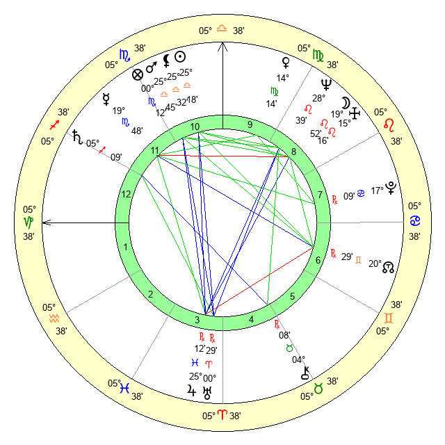 | Moon | 19 Leo 53 | 6 Libra 28 | 10 Pisces 44 |