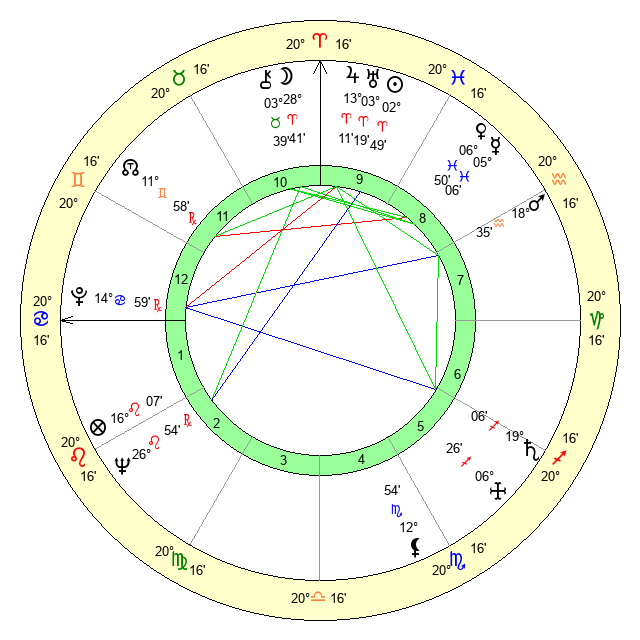 | Sun | 2 Aries 49 | 3 Aries 19 | 6 Cancer 42 |