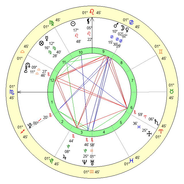 | Mercury | 12 Virgo 40 | 4 Leo 19 | 2 Libra 41 |
