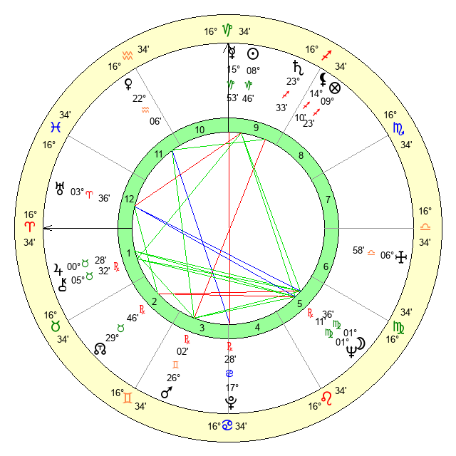 | Moon | 1 Virgo 33 | 17 Taurus 44 | 6 Pisces 26 |