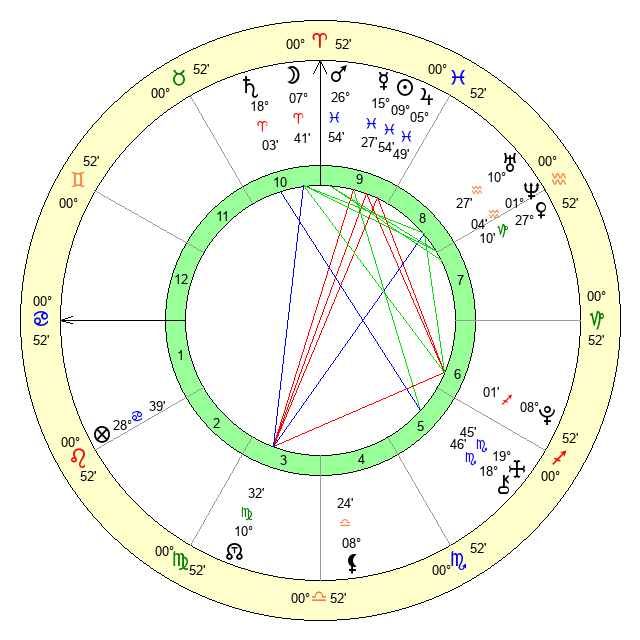 | Mars | 26 Pisces 55 | 17 Cancer 9 | 17 Aries 41 |