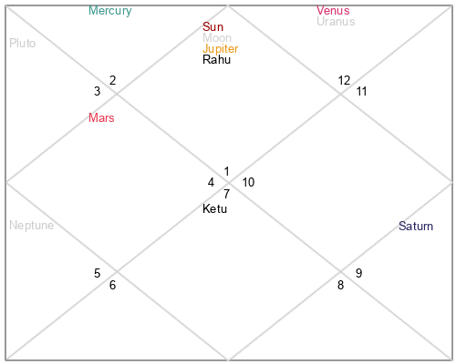 | Jupiter | 21 Taurus 48 | 22 Gemini 57 | 11 Gemini 57 |