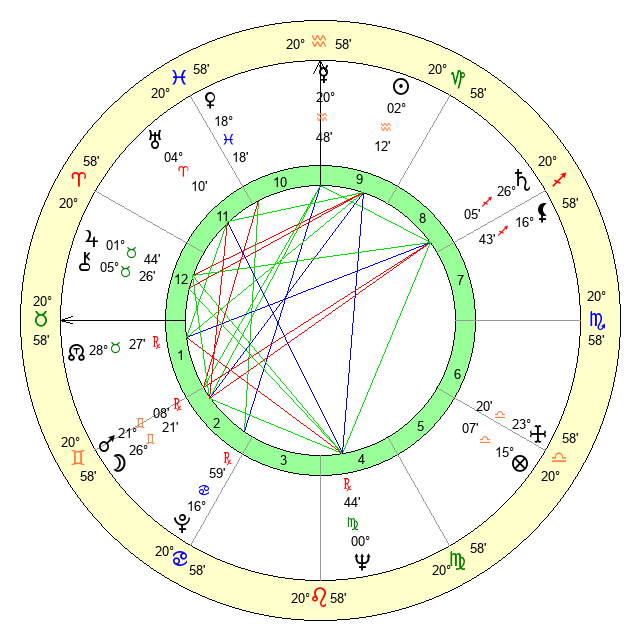 | Moon | 26 Gemini 39 | 12 Scorpio 2 | 0 Capricorn 58 |