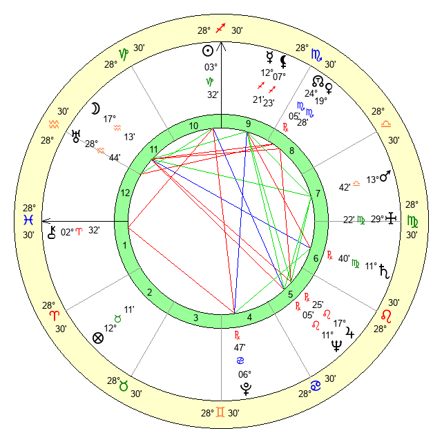 | Saturn | 12 Virgo 23 | 14 Pisces 3 | 6 Virgo 14 |