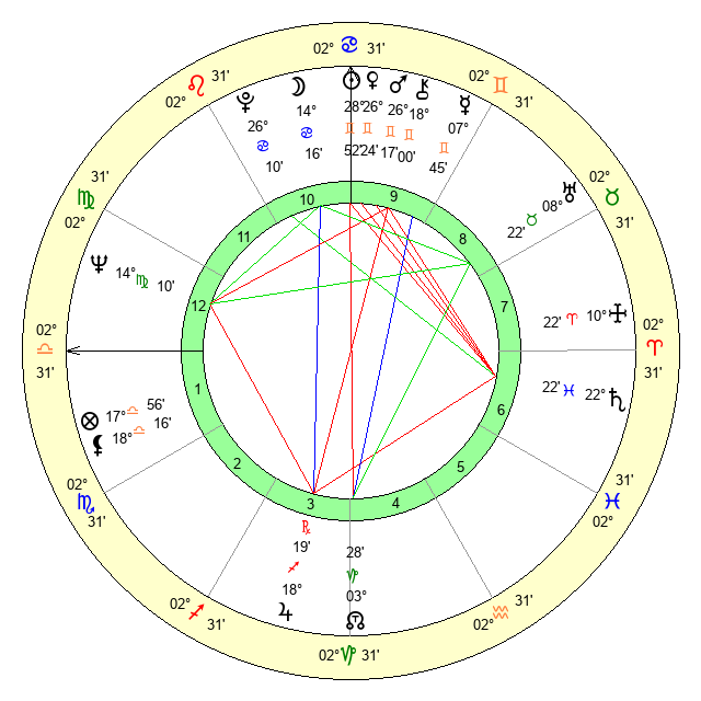 | Pluto | 26 Cancer 10 | 3 Aquarius 20 | 28 Cancer 22 |