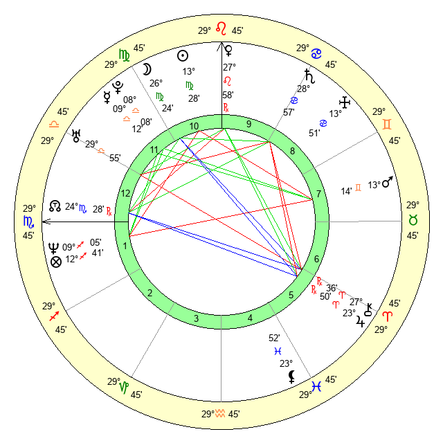 | Sun | 13 Virgo 28 | 14 Virgo 21 | 2 Scorpio 39 |
