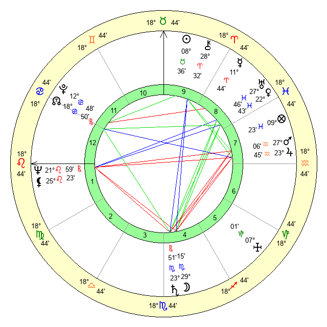 | Moon | 29 Scorpio 20 | 6 Gemini 33 | 22 Cancer 44 |