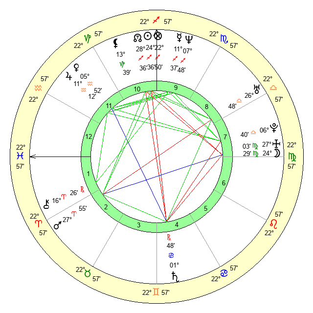| Moon | 24 Virgo 24 | 18 Scorpio 16 | 13 Leo 54 |
