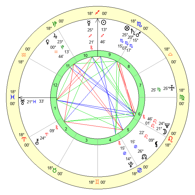 | Mars | 7 Aries 53 | 1 Leo 47 | 11 Gemini 48 |