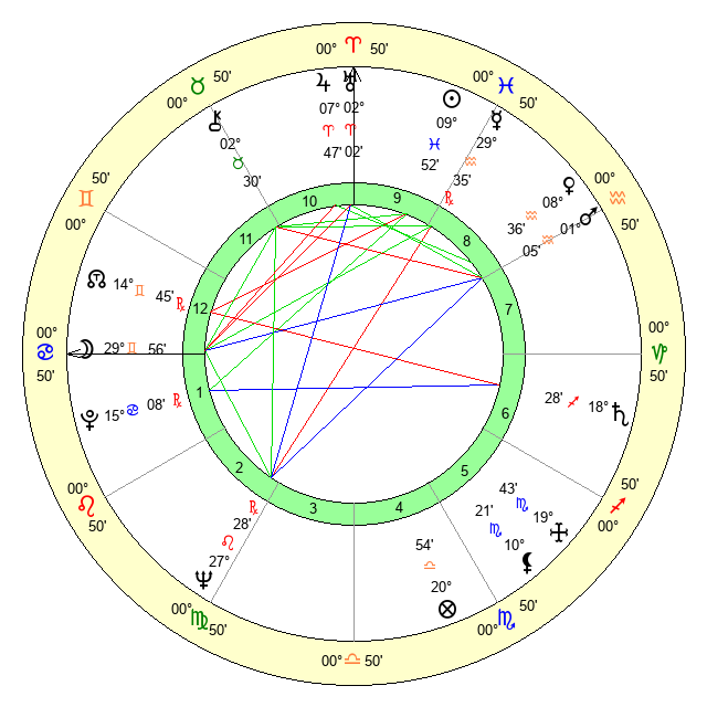 | Moon | 0 Cancer 1 | 4 Aries 18 | 9 Capricorn 9 |
