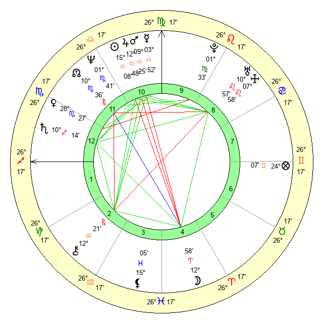 | Mars | 9 Libra 26 | 11 Scorpio 9 | 24 Scorpio 56 |