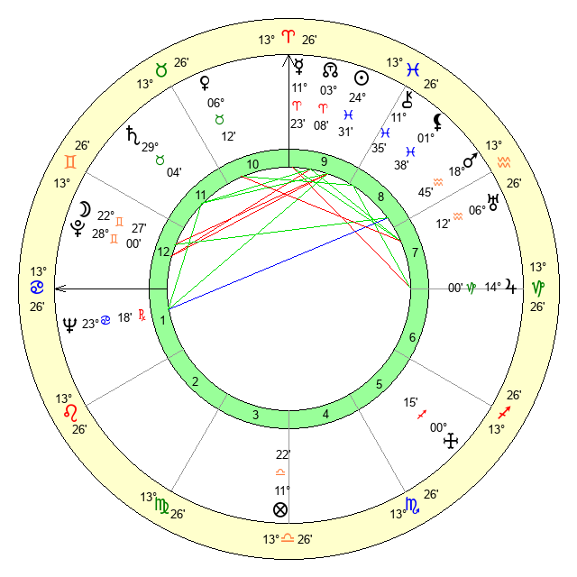 | Neptune | 23 Cancer 19 | 29 Pisces 26 | 25 Cancer 15 |