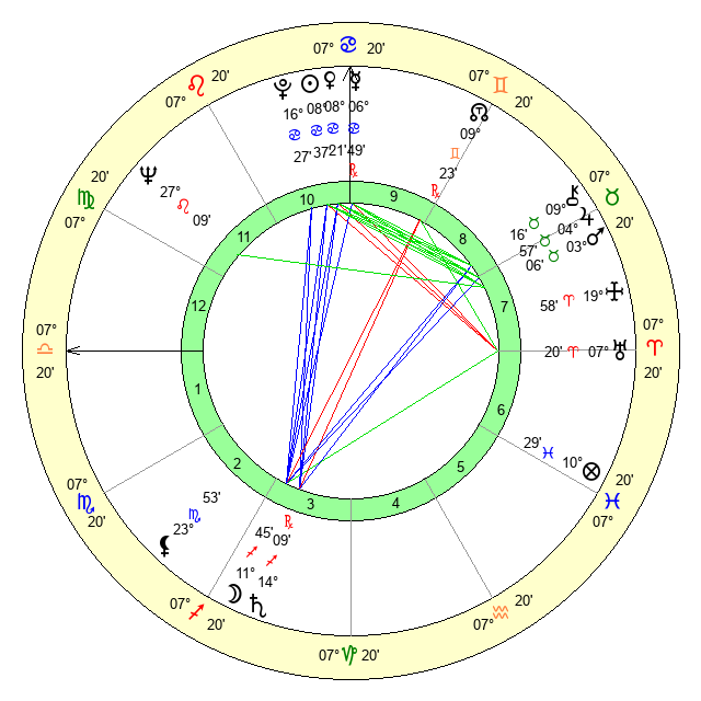 | Venus | 8 Cancer 22 | 25 Taurus 41 | 7 Scorpio 53 |