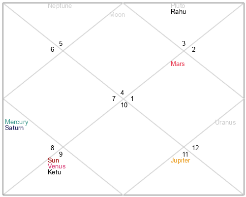 | Rahu | 7 Cancer 28 | 12 Pisces 39 | 2 Cancer 13 |
