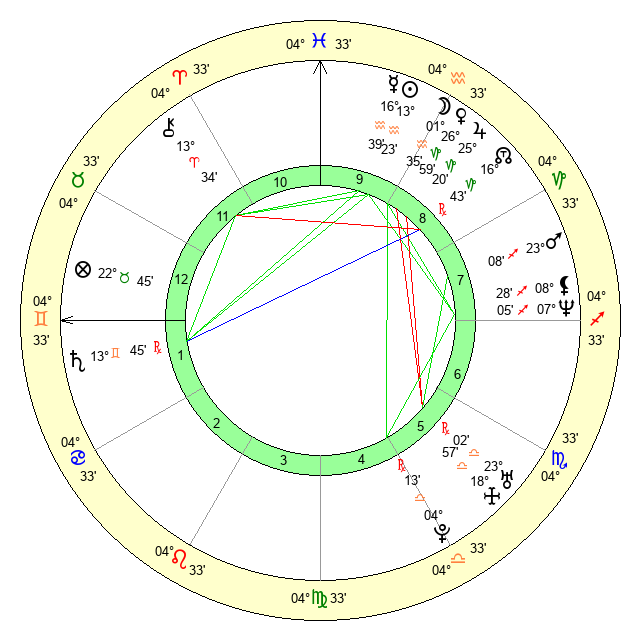 | Moon | 1 Aquarius 38 | 4 Aries 34 | 28 Sagittarius 43 |