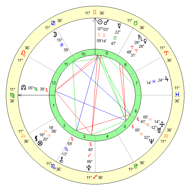 | Moon | 15 Cancer 42 | 29 Gemini 42 | 10 Cancer 2 |