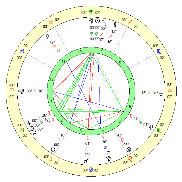 | Neptune | 1 Virgo 17 | 29 Pisces 24 | 29 Leo 2 |