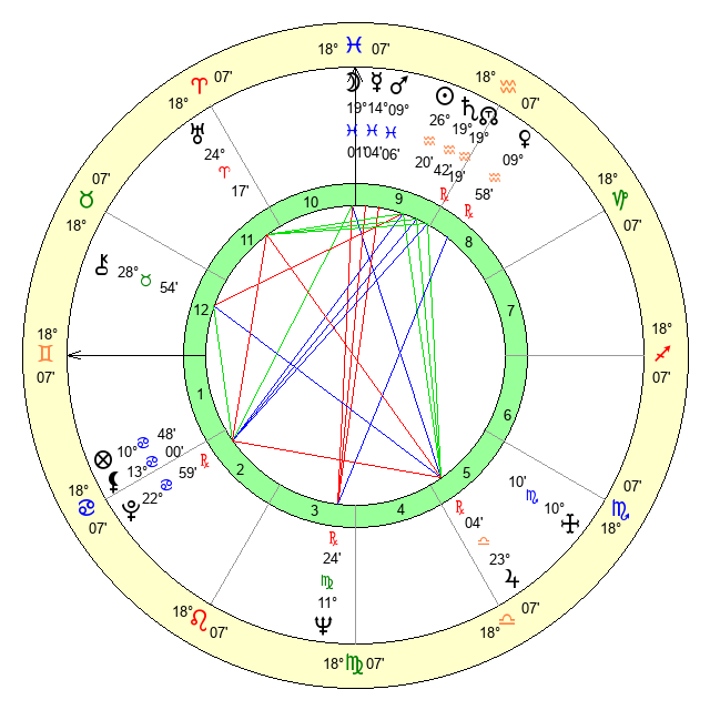 | Mercury | 14 Pisces 5 | 2 Pisces 13 | 1 Gemini 34 |