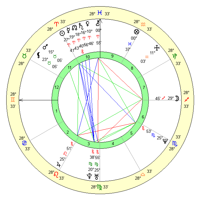 | Venus | 10 Aries 47 | 25 Pisces 3 | 20 Gemini 50 |