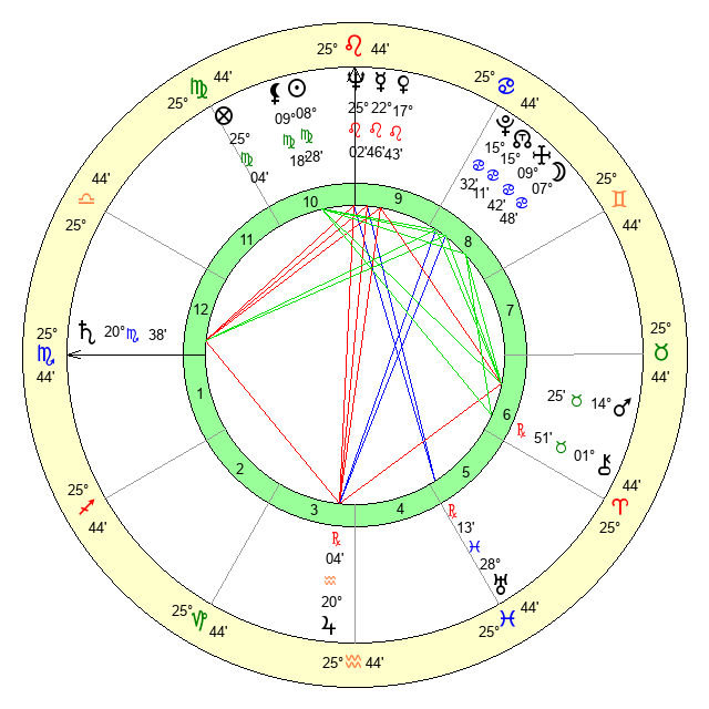 | Mercury | 22 Leo 47 | 28 Leo 23 | 26 Scorpio 35 |