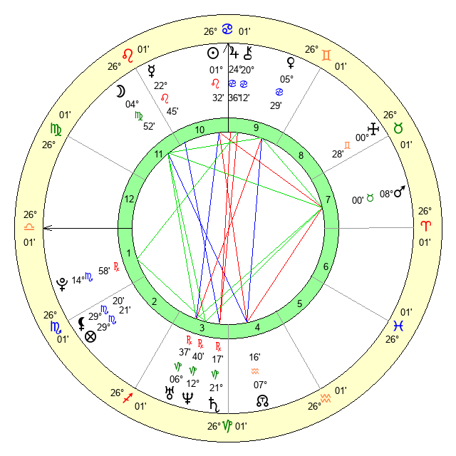 | Moon | 4 Virgo 53 | 0 Leo 46 | 9 Sagittarius 31 |