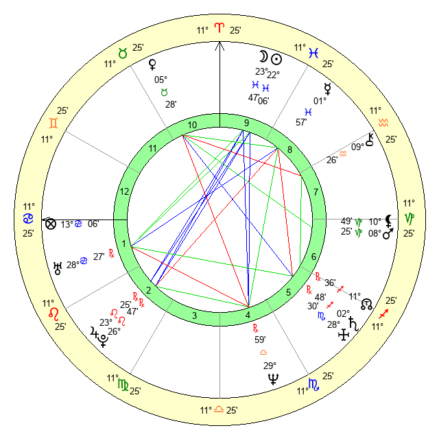 | Sun | 22 Pisces 6 | 22 Pisces 22 | 29 Taurus 37 |