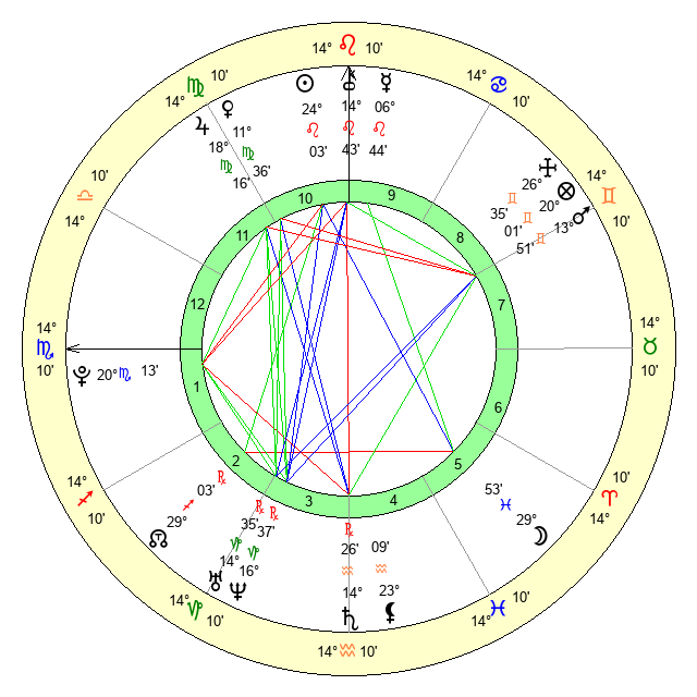 | Jupiter | 18 Virgo 10 | 14 Cancer 58 | 25 Virgo 11 |