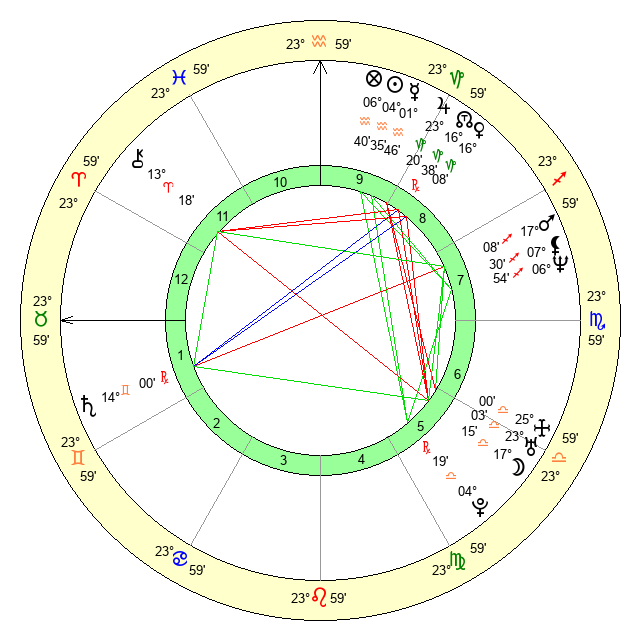 | Moon | 17 Libra 17 | 6 Sagittarius 16 | 11 Virgo 21 |