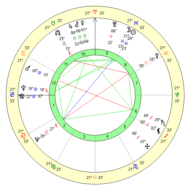 | Moon | 21 Pisces 38 | 19 Leo 2 | 8 Libra 56 |