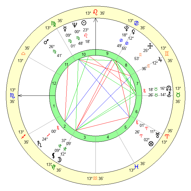 | Mercury | 9 Virgo 1 | 5 Leo 57 | 23 Scorpio 59 |
