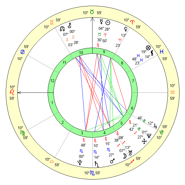 | Sun | 28 Aries 50 | 28 Aries 54 | 8 Gemini 29 |