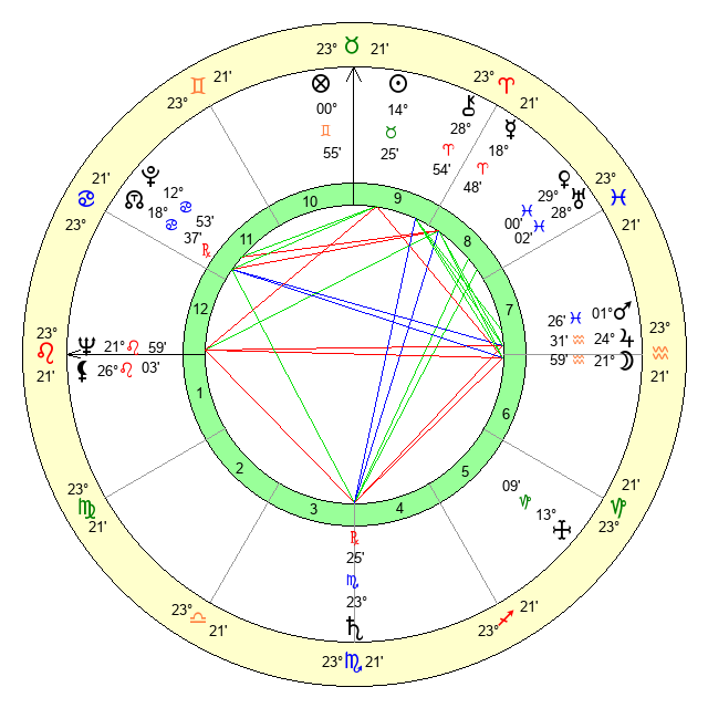 | Neptune | 21 Leo 59 | 1 Aries 14 | 24 Leo 19 |