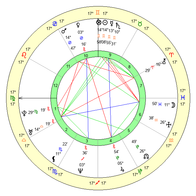 | Saturn | 10 Gemini 46 | 0 Aries 37 | 17 Gemini 7 |