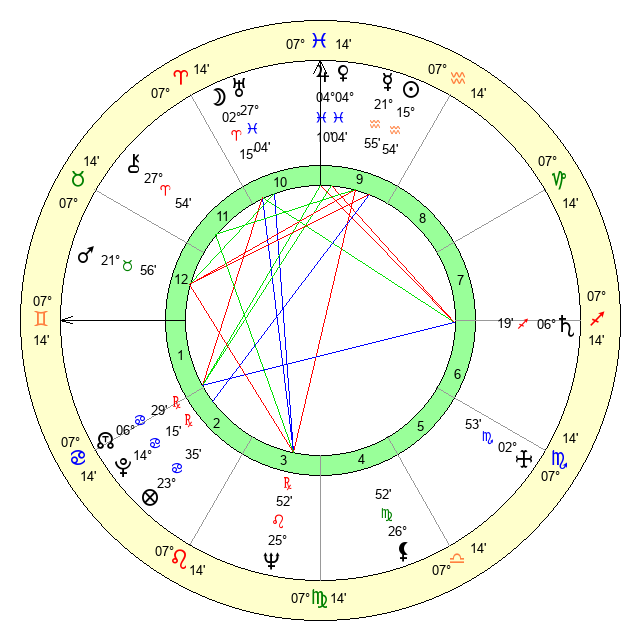 | Jupiter | 4 Pisces 7 | 11 Gemini 16 | 26 Pisces 18 |