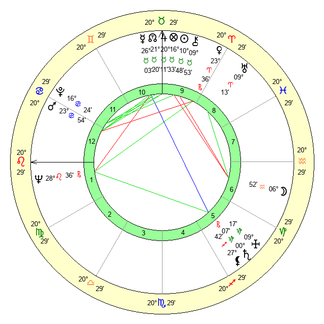 | Neptune | 28 Leo 37 | 1 Aries 7 | 0 Virgo 26 |