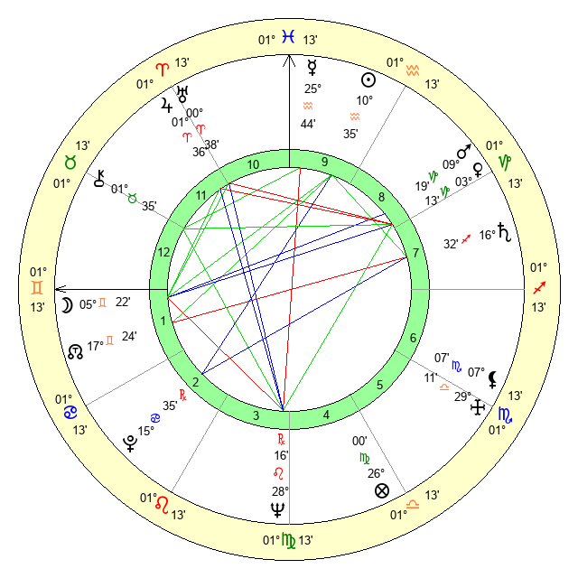 | Moon | 5 Gemini 30 | 10 Pisces 40 | 17 Sagittarius 57 |