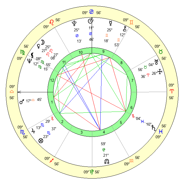 | Sun | 11 Cancer 46 | 12 Cancer 58 | 8 Libra 34 |