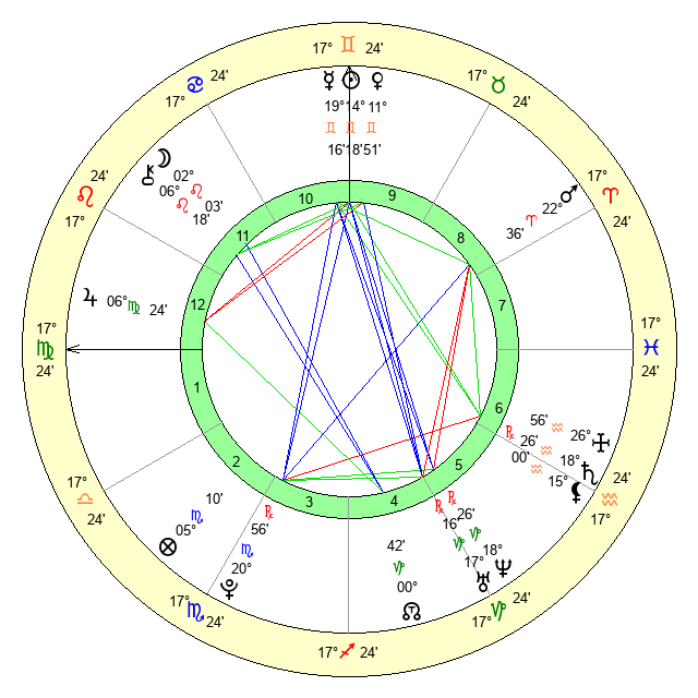 | Jupiter | 6 Virgo 17 | 28 Gemini 50 | 10 Virgo 40 |