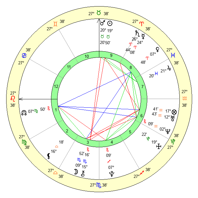 | Neptune | 2 Aquarius 8 | 1 Aries 22 | 1 Aquarius 52 |
