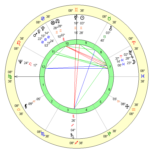 | Moon | 23 Pisces 0 | 14 Taurus 43 | 26 Libra 20 |