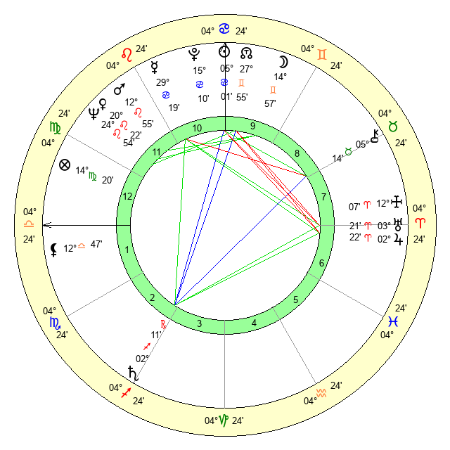| Sun | 5 Cancer 2 | 6 Cancer 18 | 9 Libra 29 |
