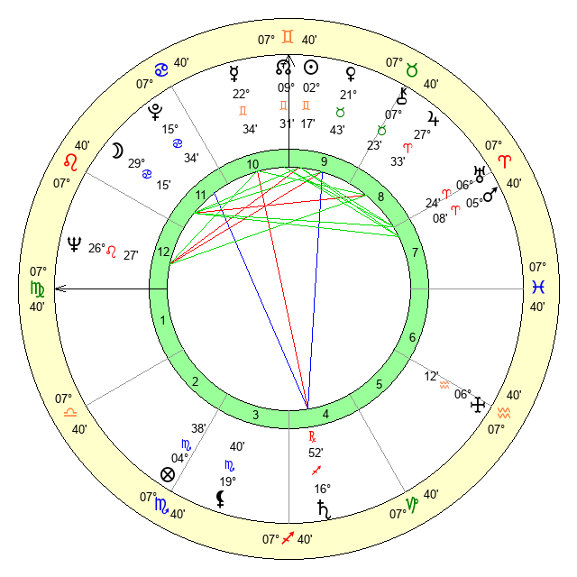 | Sun | 2 Gemini 17 | 2 Gemini 49 | 5 Virgo 7 |