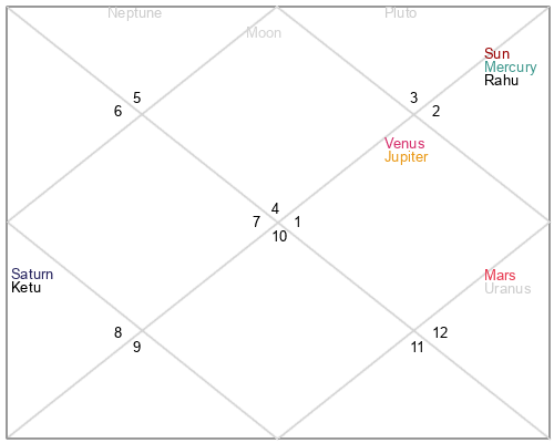 | Rahu | 10 Gemini 2 | 23 Pisces 56 | 4 Gemini 54 |