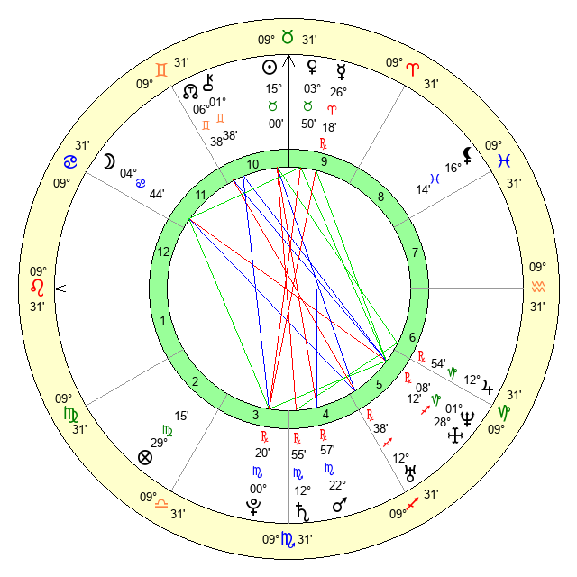 | Moon | 4 Cancer 50 | 24 Leo 2 | 15 Capricorn 14 |