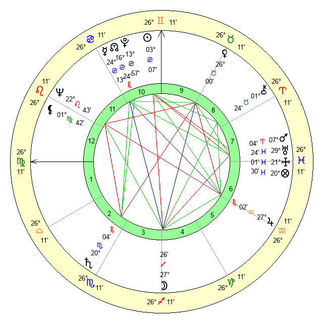 | Jupiter | 26 Aquarius 56 | 3 Cancer 33 | 17 Aquarius 26 |