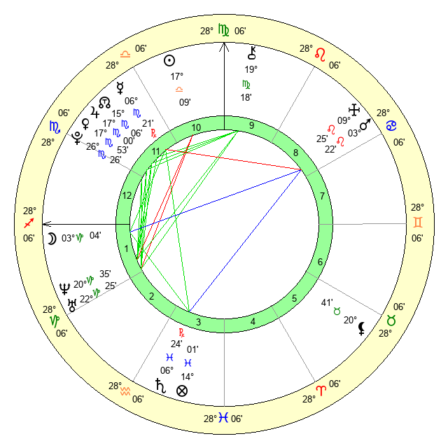 | Venus | 17 Scorpio 52 | 26 Virgo 3 | 5 Scorpio 52 |