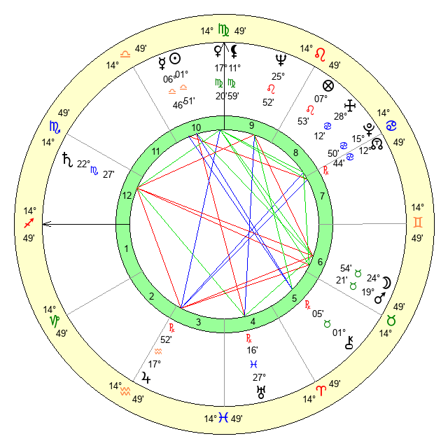 | Venus | 17 Virgo 21 | 7 Virgo 34 | 21 Capricorn 30 |