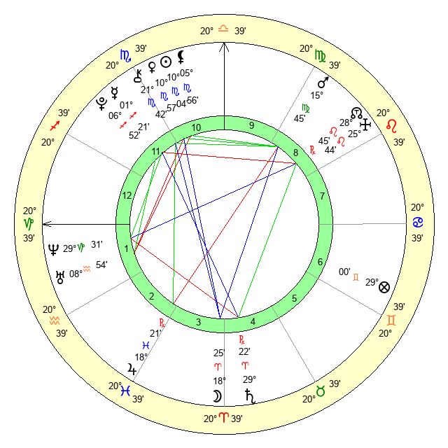 | Mars | 15 Virgo 45 | 28 Scorpio 41 | 1 Libra 16 |