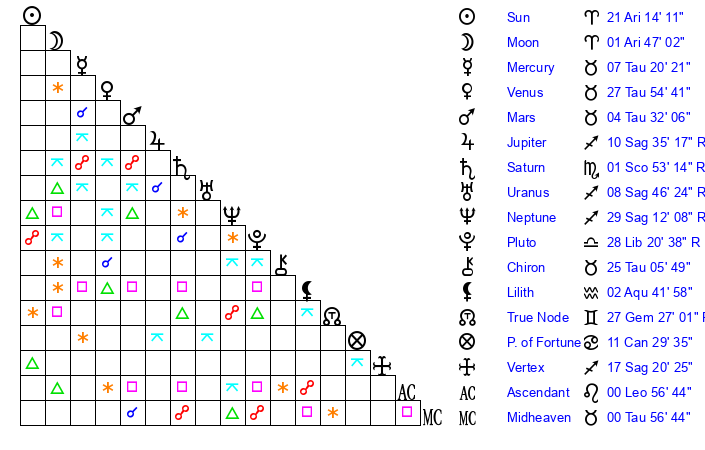 Sun | 21 Aries 14 | 22 Aries 3 | 2 Gemini 0 |